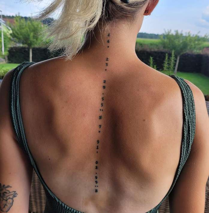 Die Koordinaten des Bietschhorn-Gipfels zieren den Rücken von Samira Kalbermatten.