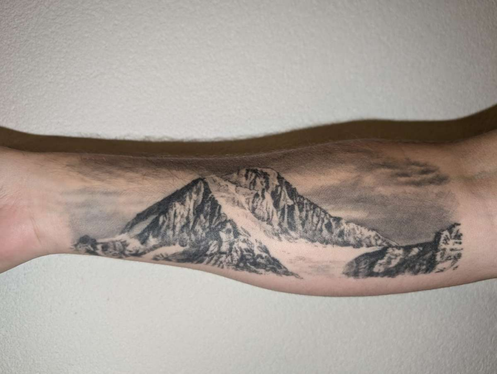 Das Bietschhorn-Tattoo von Jonas Jeiziner, gestochen von Tattoo Herzblut.