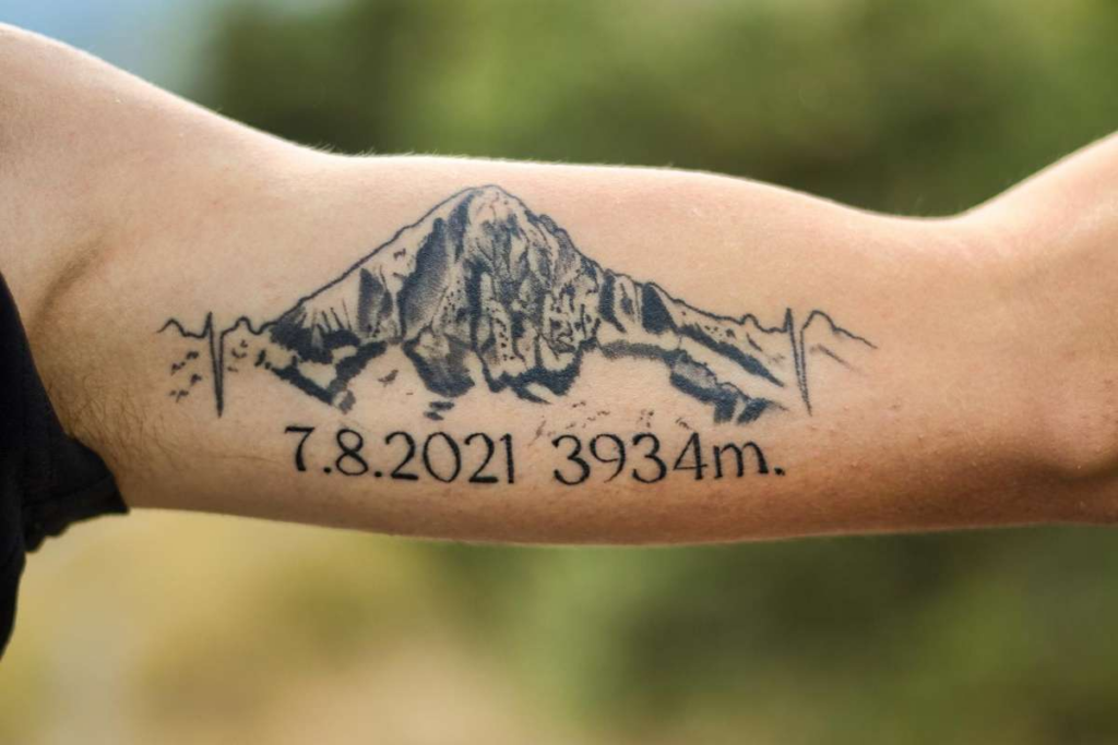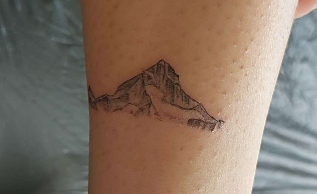 Das Tattoo von Larissa Ebener zeigt ihre Liebe zu den Bergen und die tiefe Verbindung zur Heimat. Der markante Gipfel gibt ihr ein Gefühl von Freiheit, Sicherheit und Geborgenheit. Vor zwei Jahren stand sie selbst auf dem Gipfel und erfüllte sich damit einen Traum.