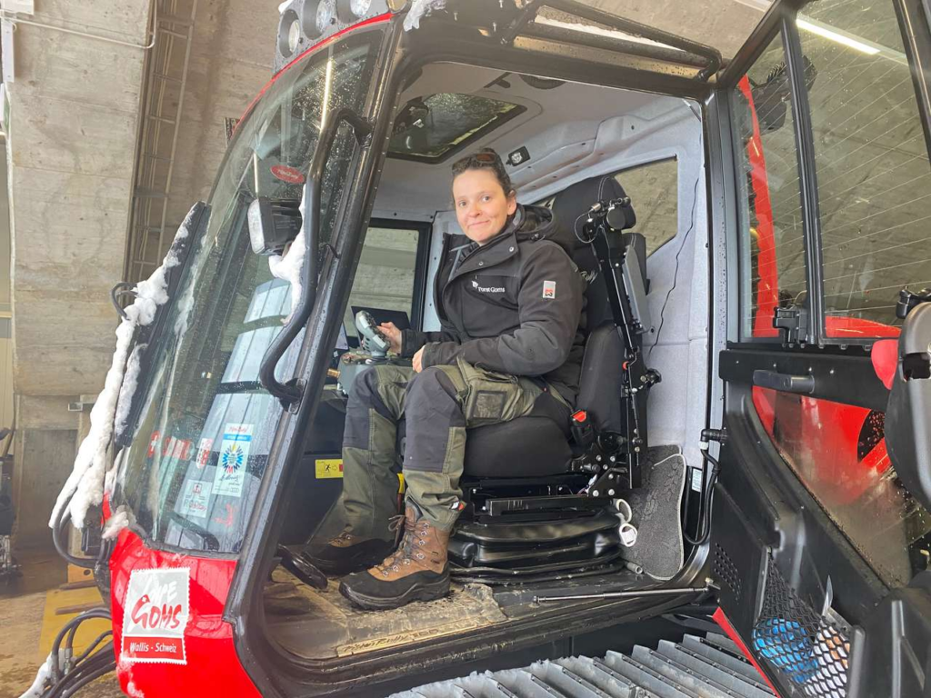 Sie fährt Pistenfahrzeug: Eine Seltenheit im Oberwallis
